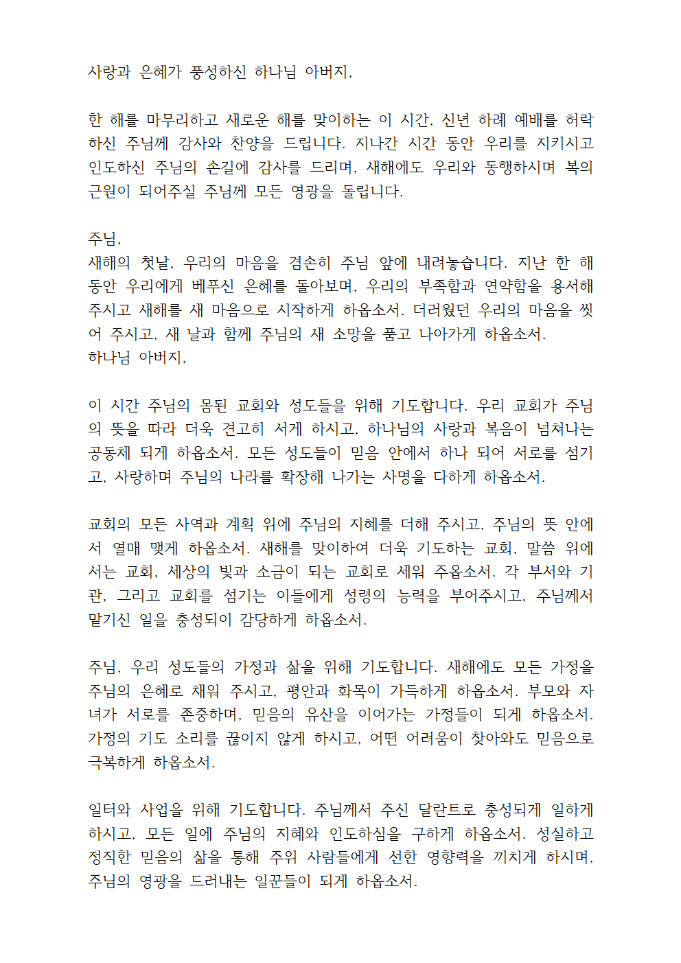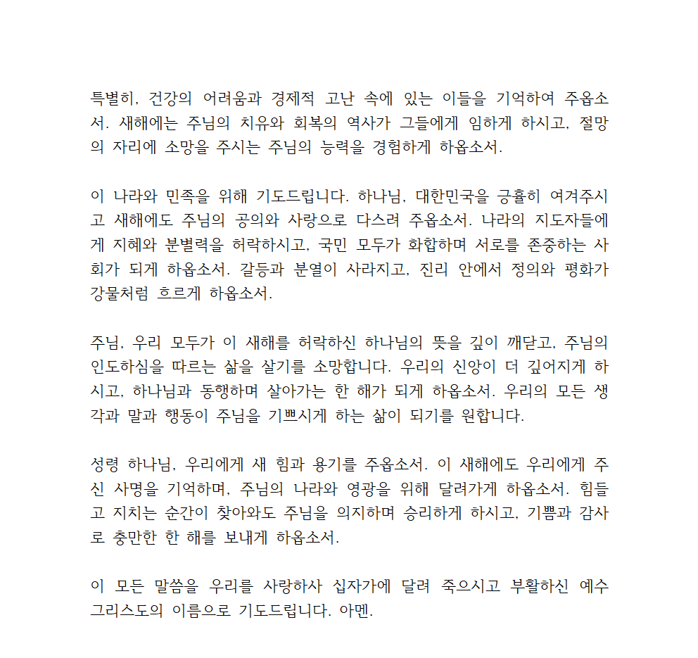 ※ 다음은 신년 대표 기도문입니다. 필요하실 때 사용해 보세요.