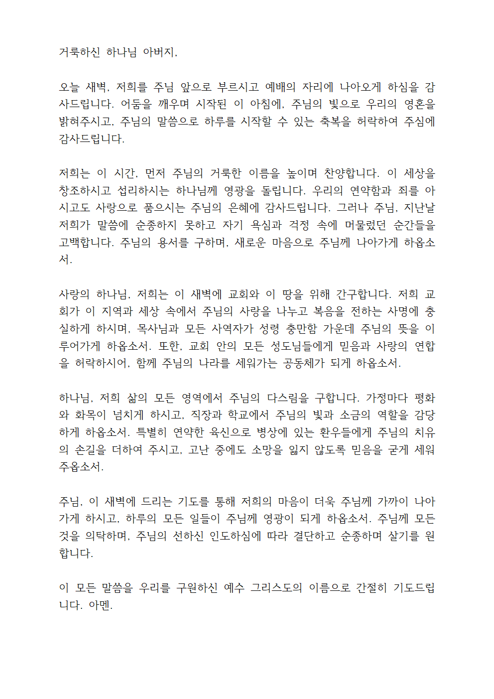 ※ 다음은 새벽기도회 기도문입니다. 필요하실 때 사용해 보세요.