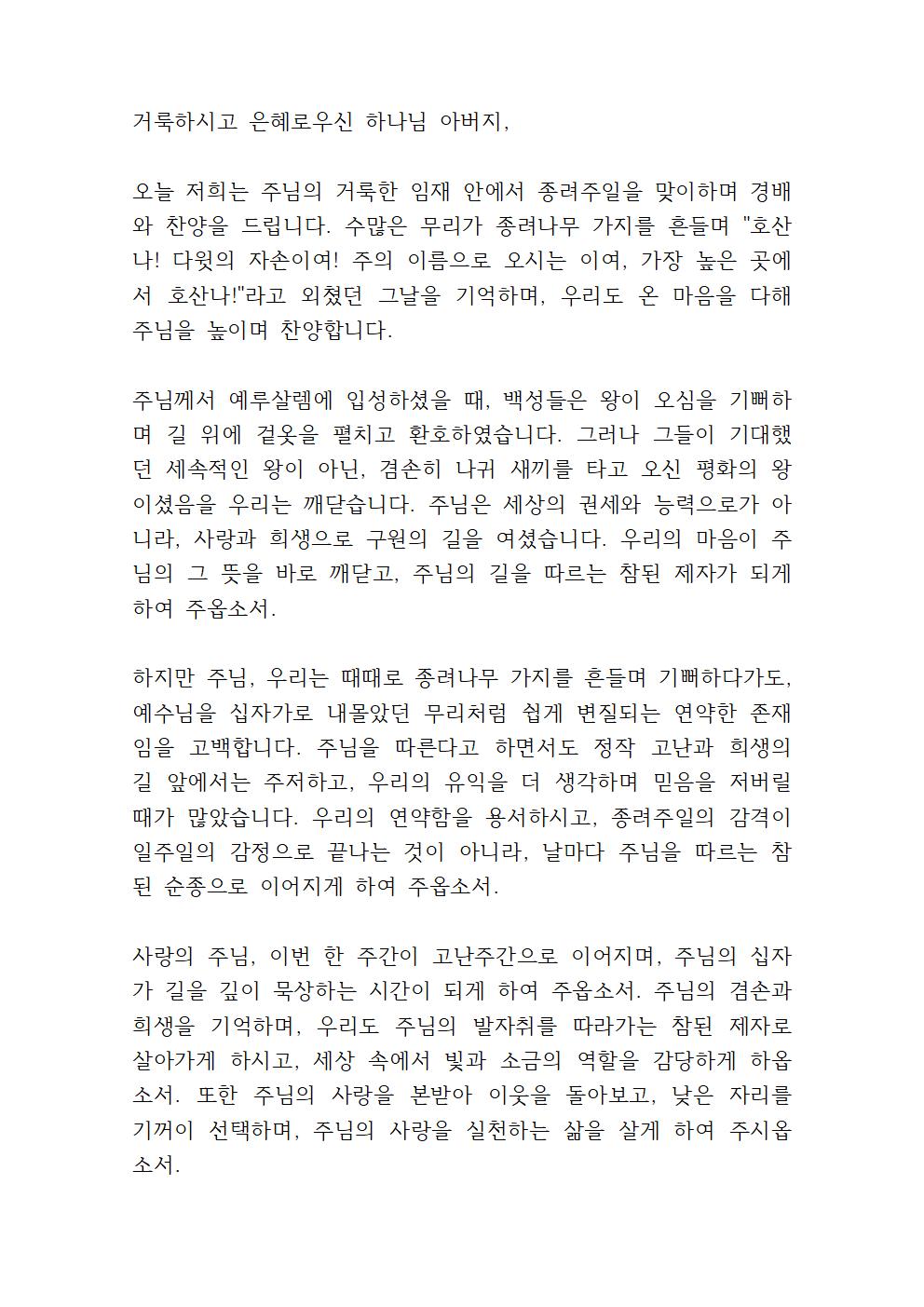 2025년 종려주일 대표기도문 파일