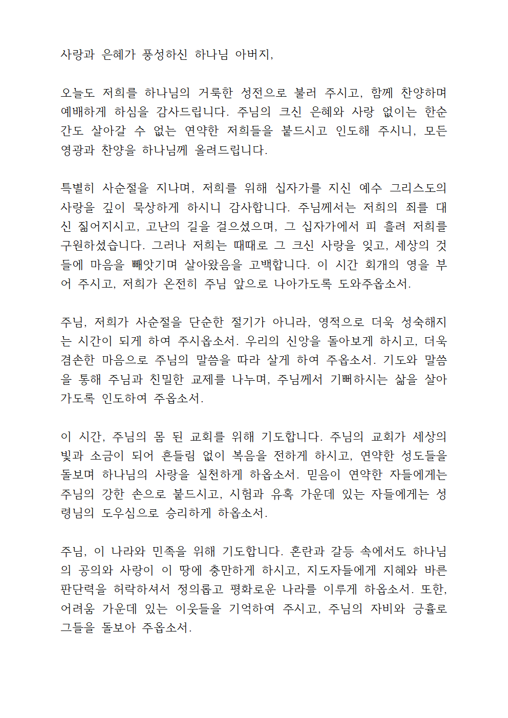 이번 글에서는 2025년 3월 4째주 대표기도문 모음을 안내해 드리겠습니다.