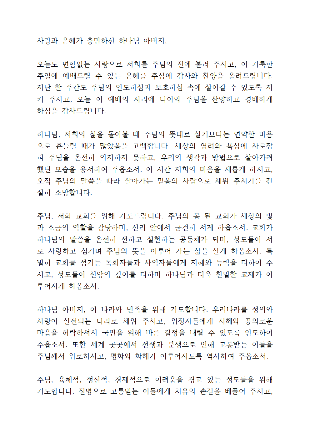 ※ 기도문을 한글 문서 or PDF 문서로 받으시려면 아래를 참고하세요.