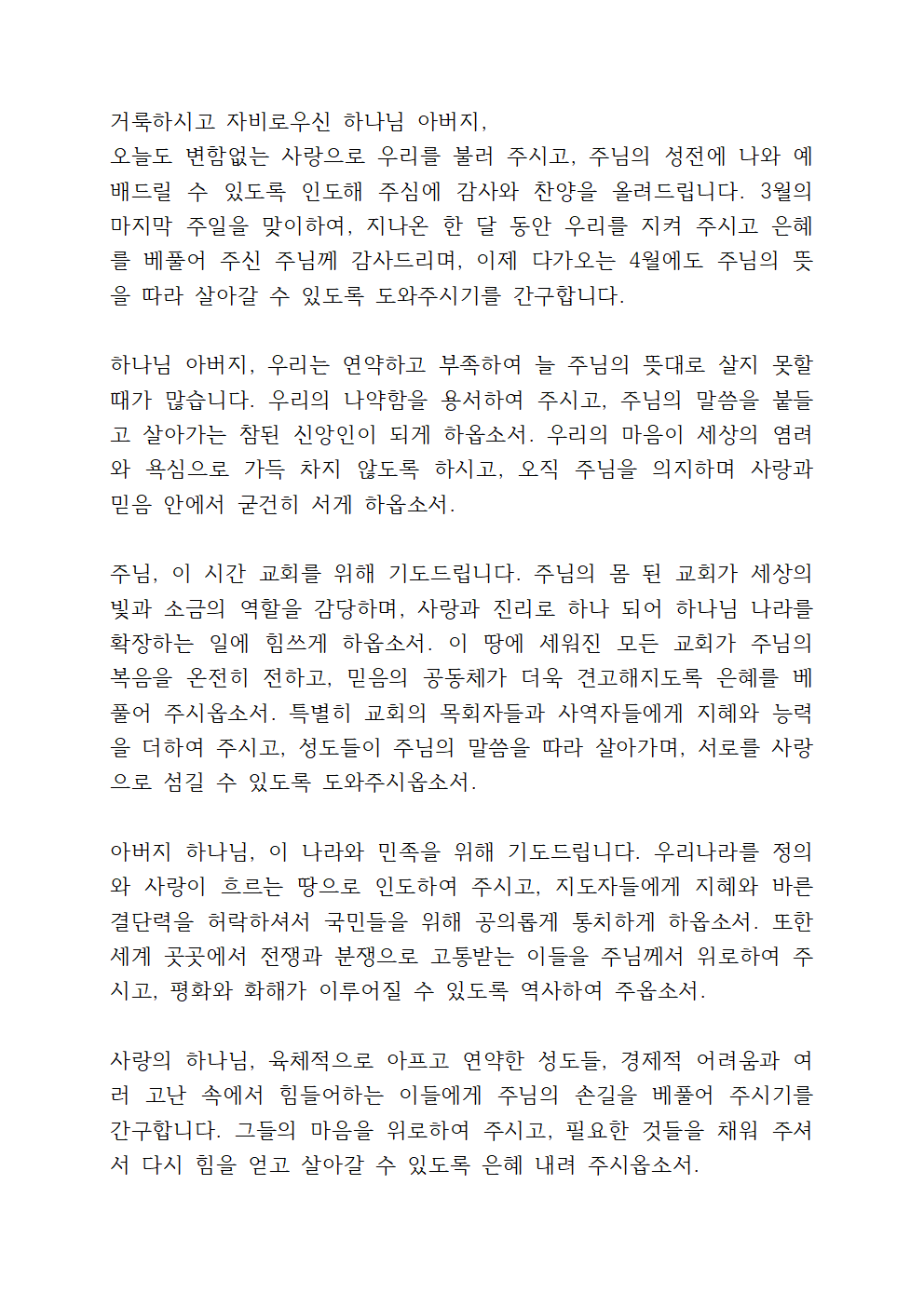 2025년 3월 5째주 대표기도문 내용