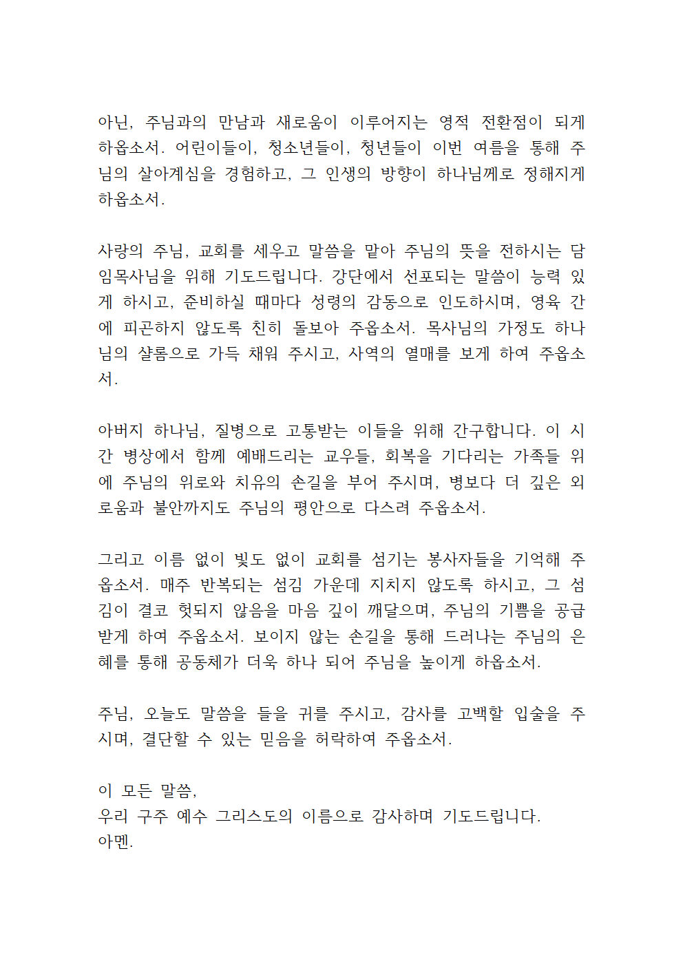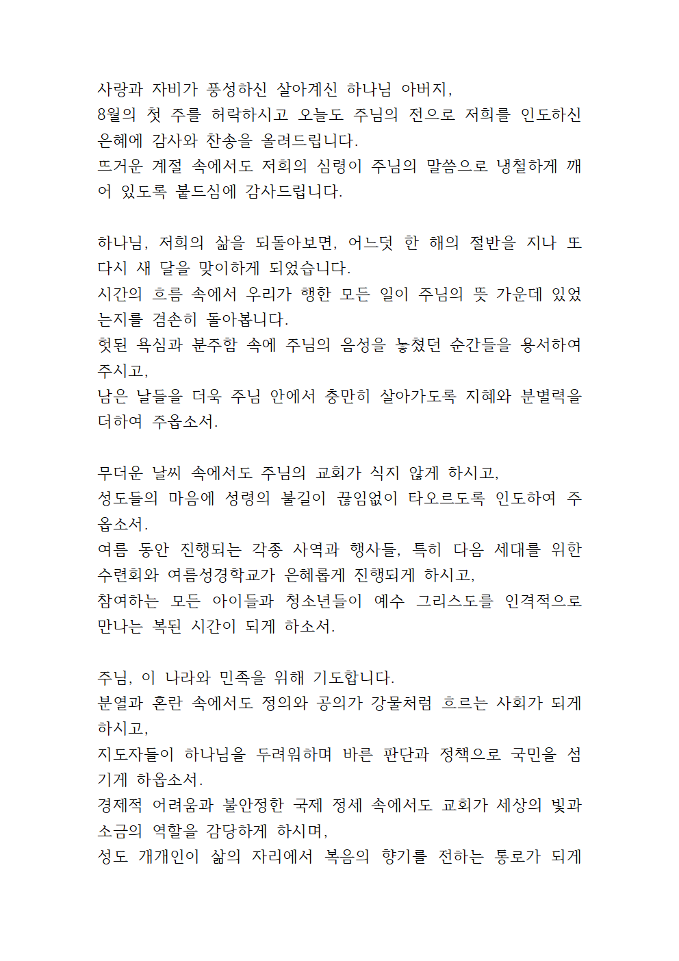 이번 글에서는 8월 첫주일 대표기도문 모음을 안내해 드리겠습니다.
