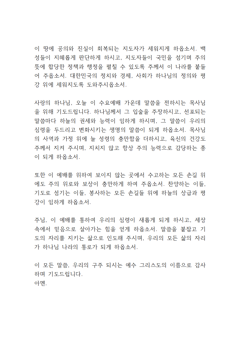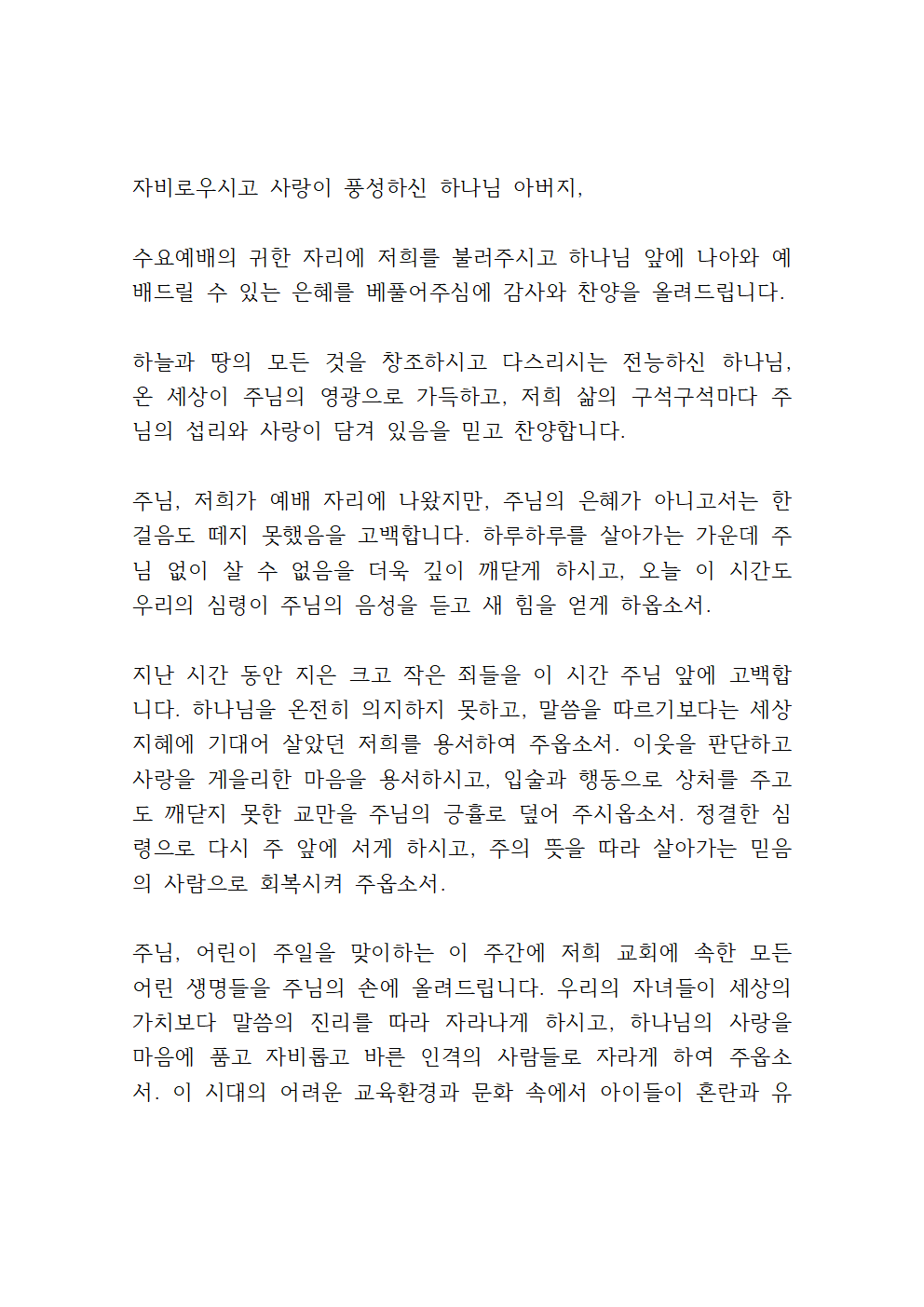 5월 넷째 주 수요예배 대표기도문