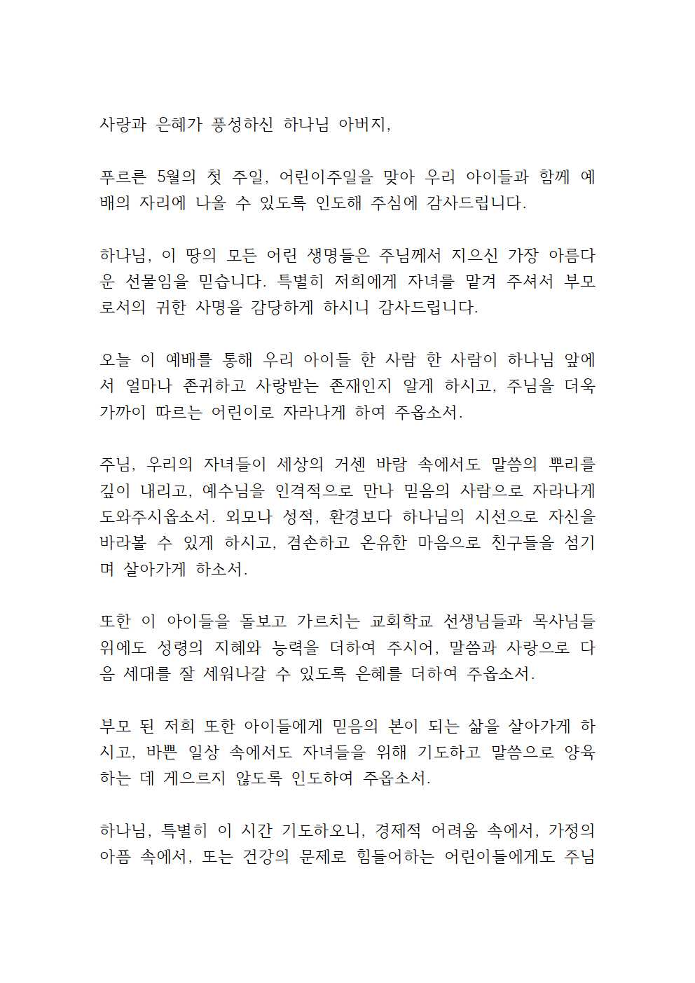 어린이주일 기도문 1,2,3