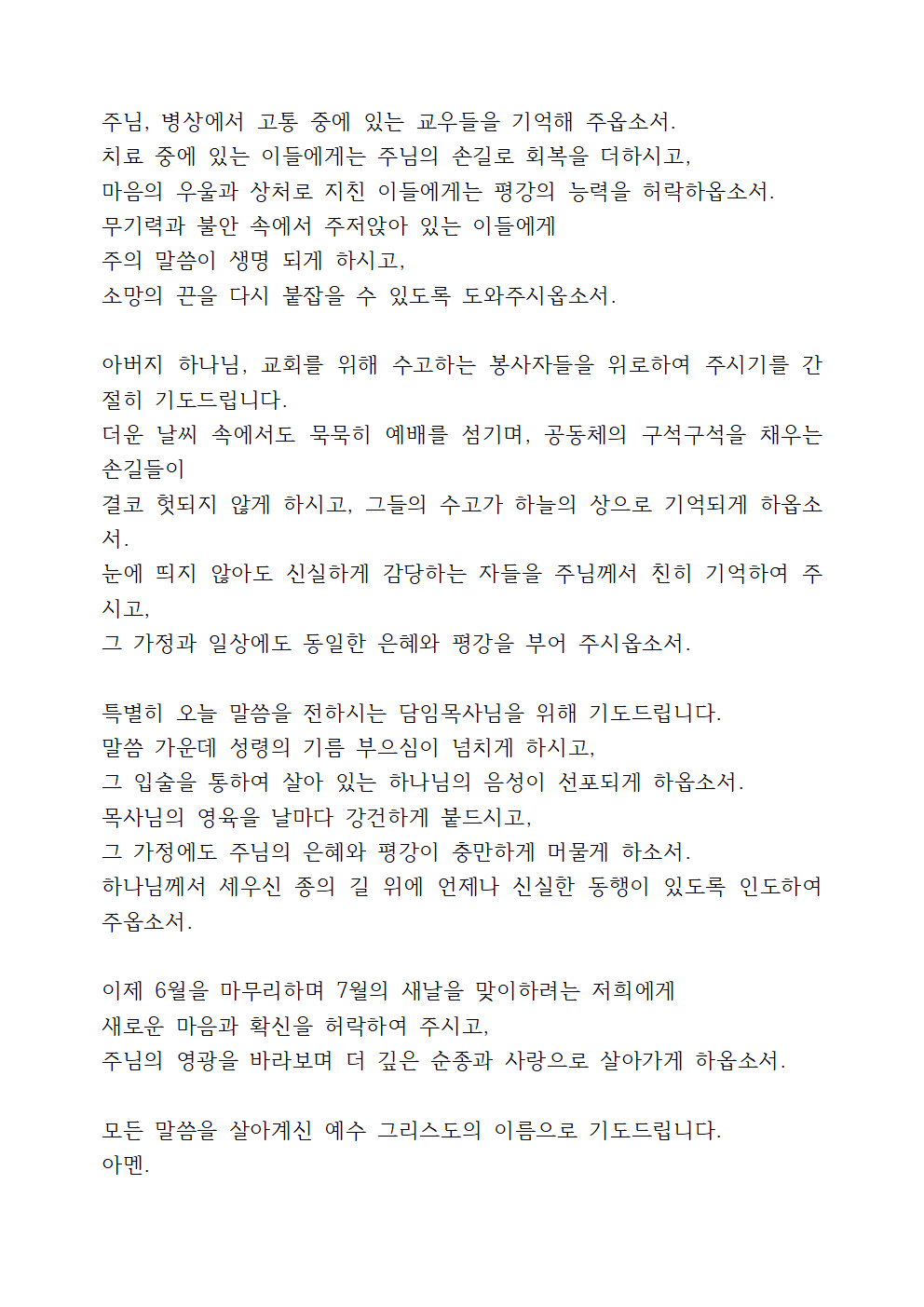 오늘은 6월 마지막주일 낮예배 대표기도문을 안내해 드리겠습니다.