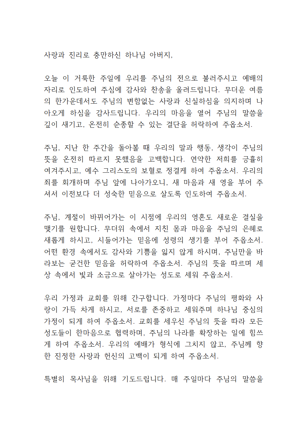 '7월 마지막 주일낮예배 대표기도문 모음'