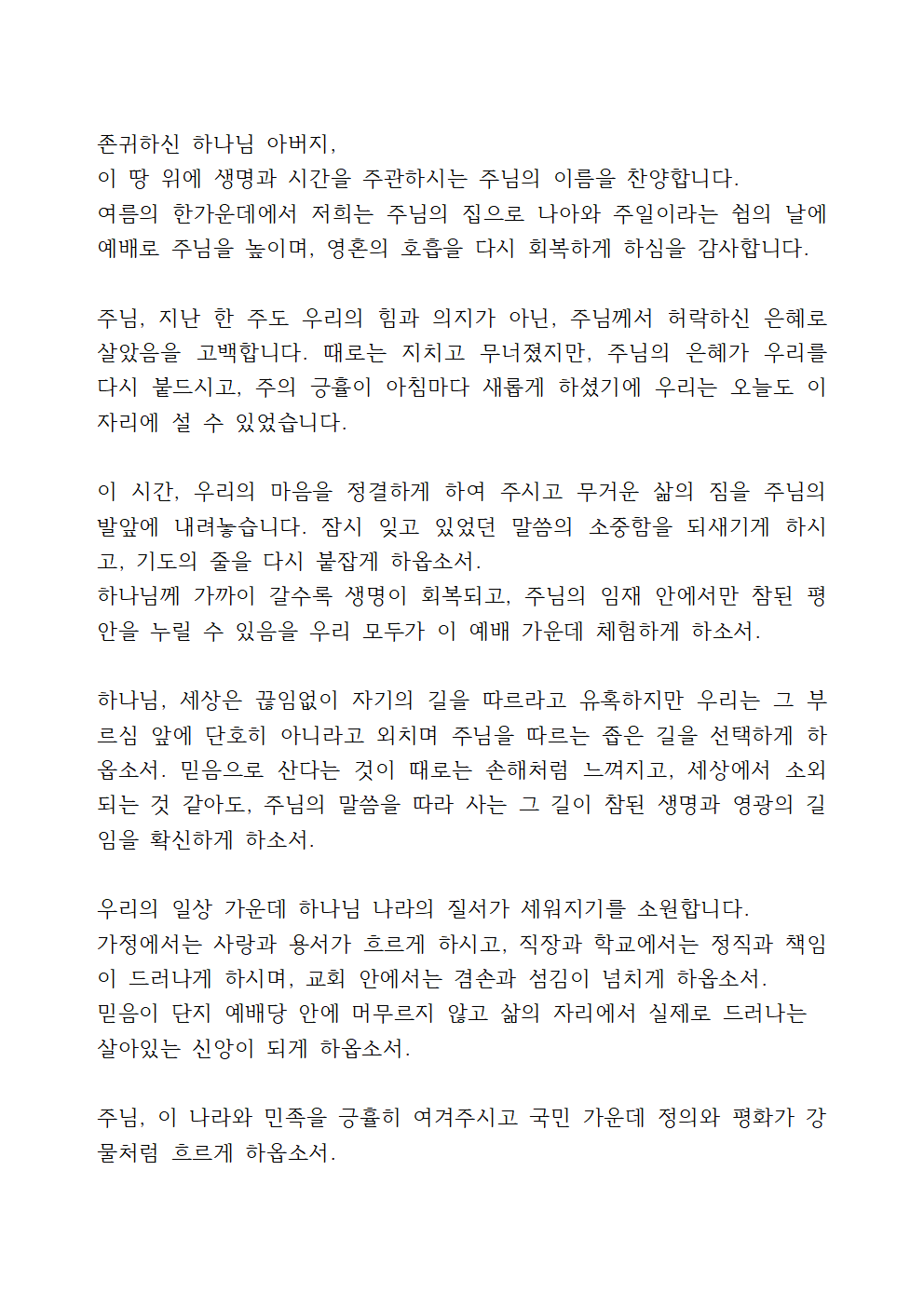 7월 셋째주일예배 대표기도문 모음 (2)