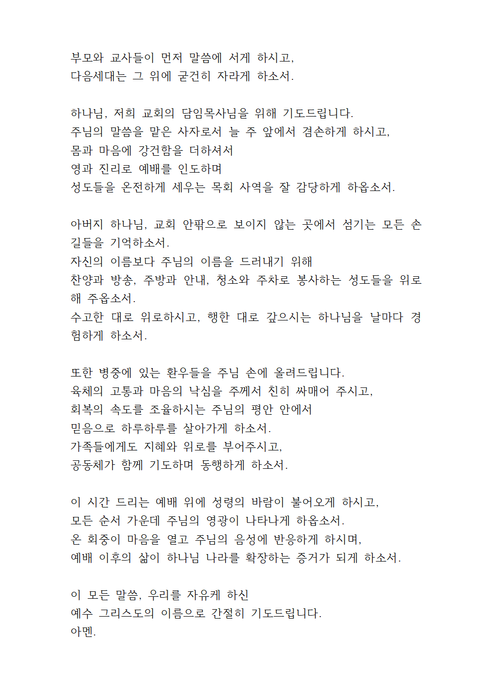 ※ 기도문을 한글 문서 or PDF 문서로 받으시려면 아래를 참고하세요.