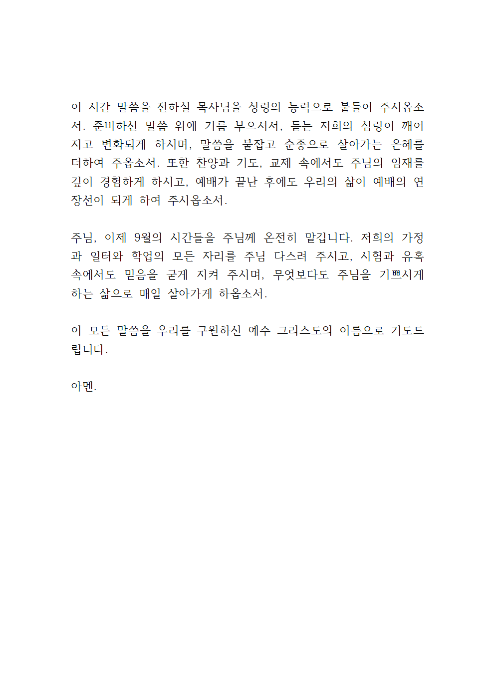 9월 둘째주 대표기도문 pdf 파일
